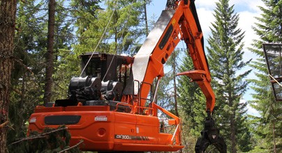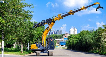 林業伸縮臂主要用于林業采伐施工,將伐倒樹木從山坡上拖拽到開闊地或道路邊上歸堆,以配合伐木機或人工進行分段作業。